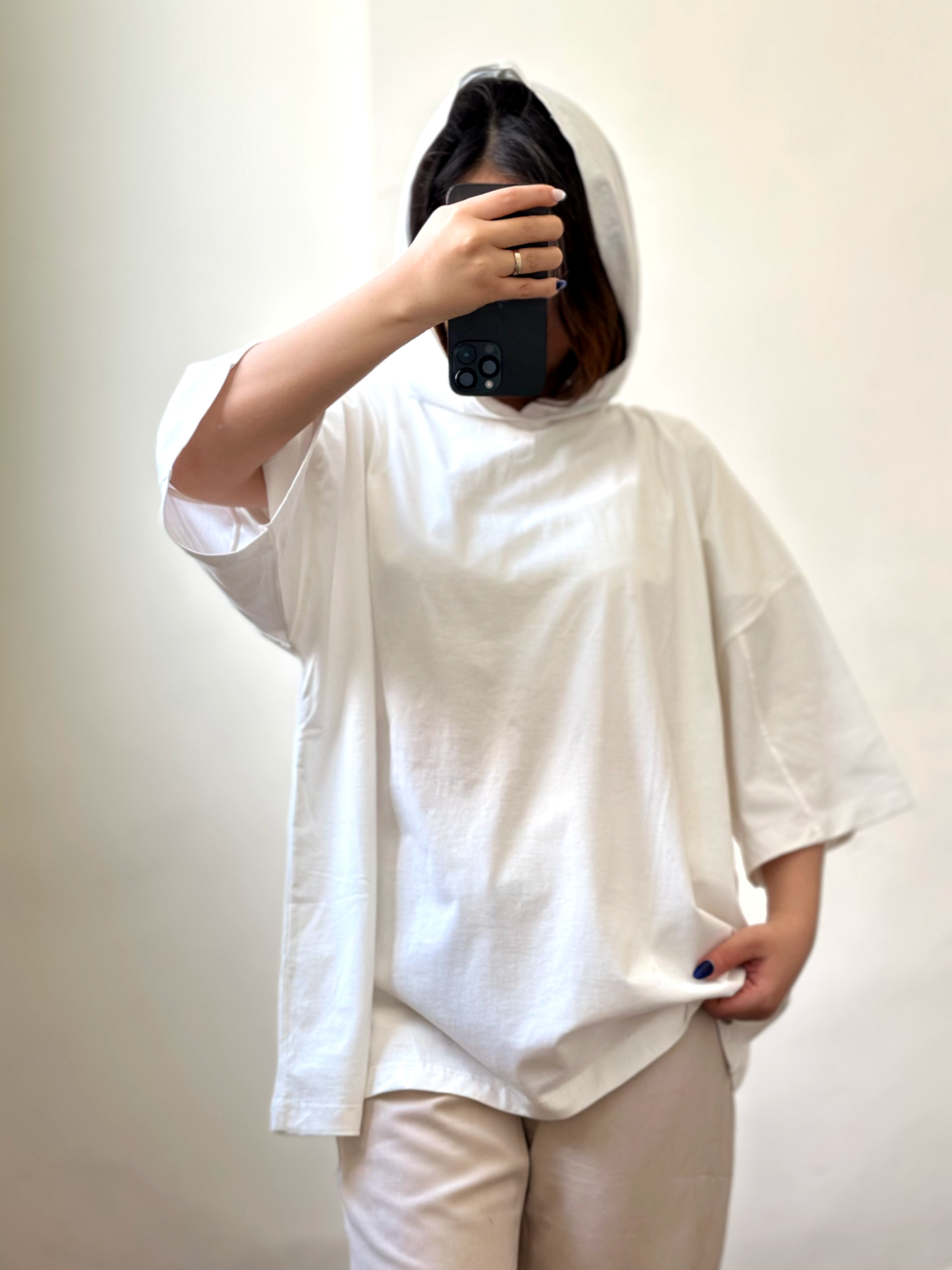 تیشرت کلاهدار سفید