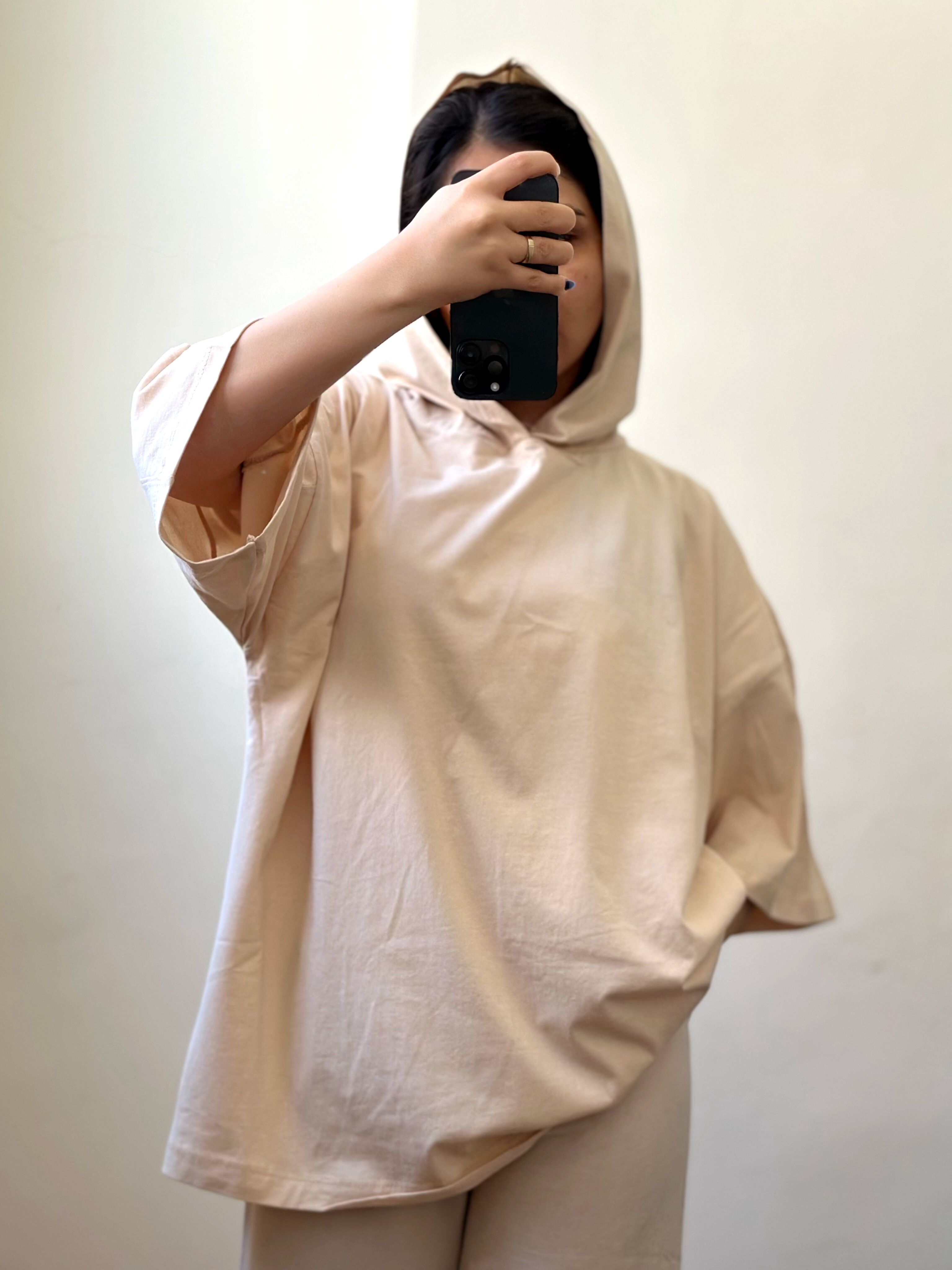 تیشرت کلاهدار-کرمی